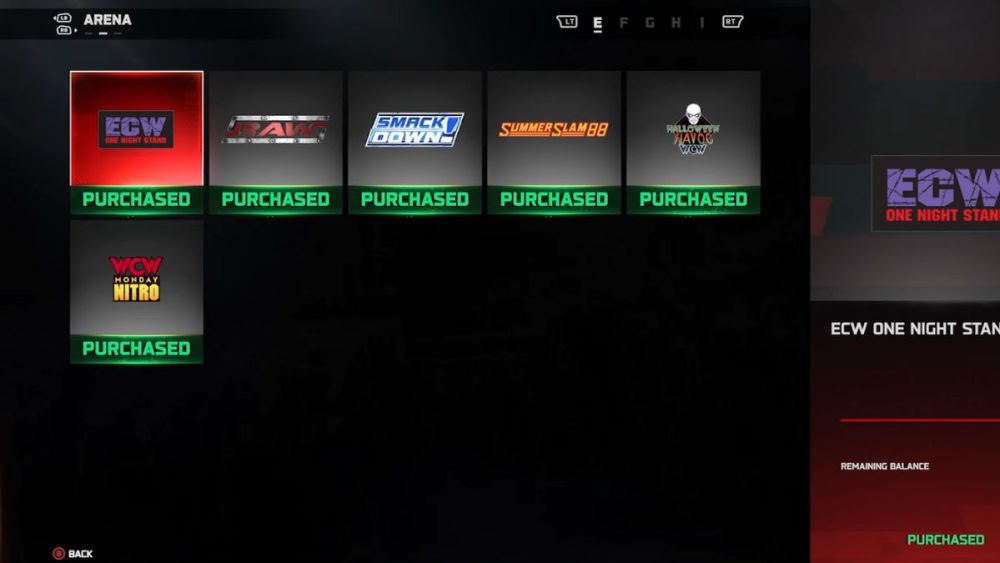 While there are no extra arenas available as DLC, you can unlock everything included in the in-game store by purchasing the Supercharger. This will instantly unlock all 151 Superstars, Arenas, and Championships featured in the Purchasables section. If you purchased one of the special editions of the game, like the Deadman edition, the supercharger should already be included in the package.