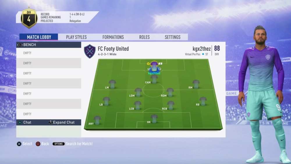 All of those bad habits you learned in drop-in games will need to be forgotten as actual footy knowledge goes a long way even if your stick skills aren’t up to par. While it does help to know a few tricks (R3 is very useful when trying to get out of close quarters with your first touch), don’t be that guy who gets the ball on the wing and proceeds to try every skill through countless defenders like a virtual Neymar. In general, keeping it simple goes a long way and your teammates will really appreciate it as you move the ball in a timely fashion.