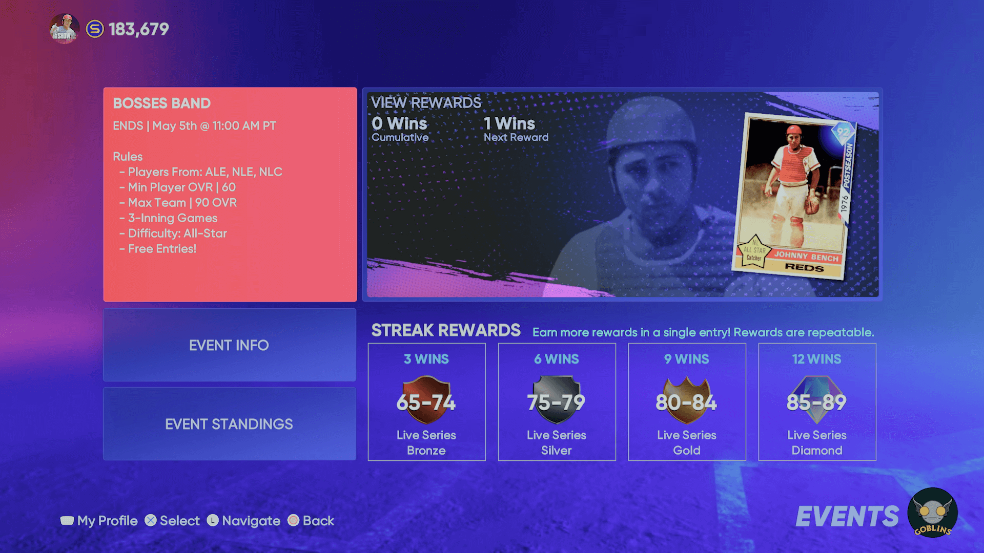 The two big player rewards are a Breakout Wade Boggs and a Postseason Johnny Bench, but we also get the re-introduction of the Rewind Events choice pack where you’ll be able to snag a player from any of the old events that you might have not wanted to do or could not do due to time constraints.