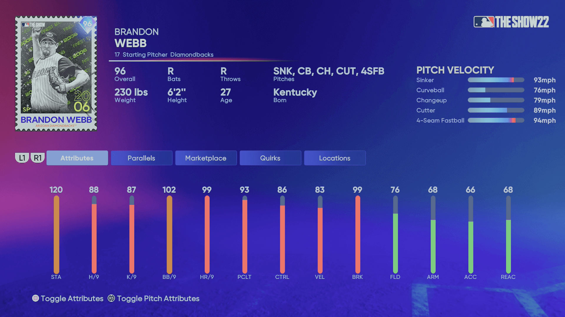 Brandon Webb is a tough one to get a read on year to year. His sinker should still be good, but he’s not bringing the top-end velocity and has generally struggled to find a place in rotations in DD. Having the cutter and changeup should add to his chances, but he’s still only got 88 H/9 and just doesn’t have power stuff overall. I question how much he sticks around (his price is really low already on launch), but it’s nice having another cool looking Finest card around.