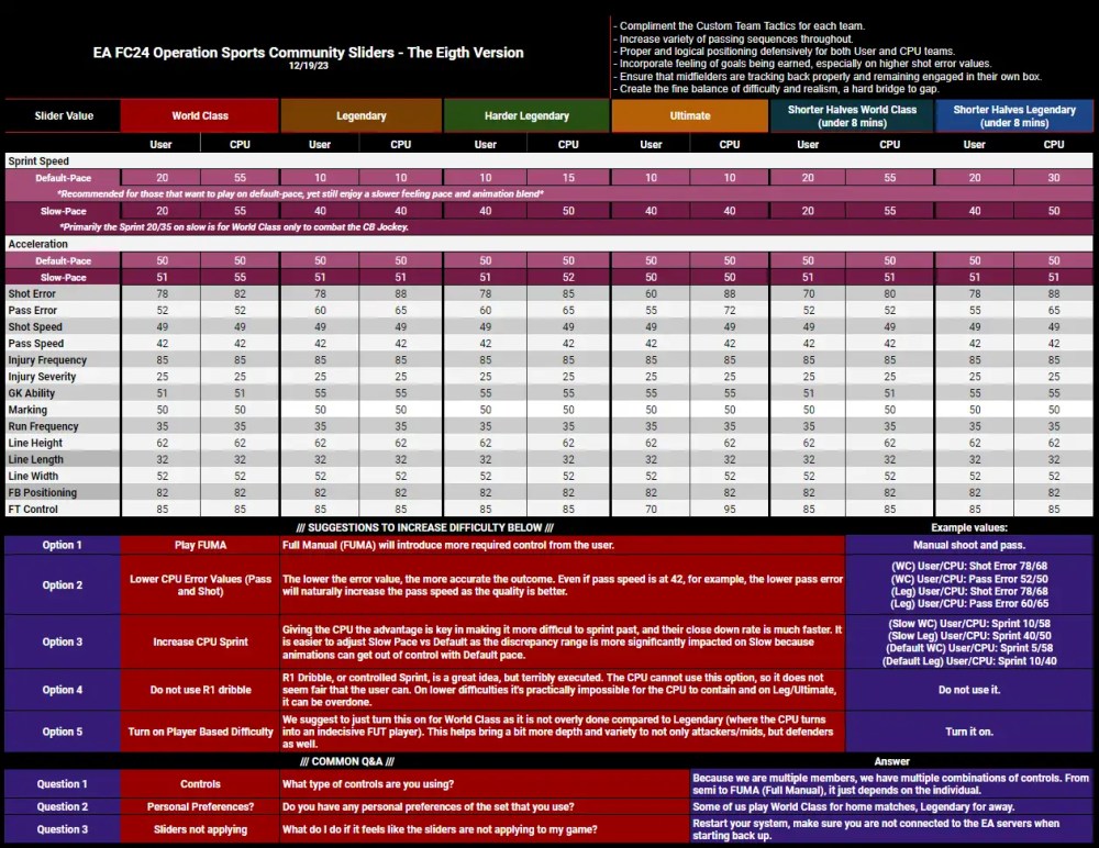 It has been a couple months since we checked in with the latest EA Sports FC 24 OS community sliders, and it’s likely close to the end of the major changes for these sliders with Version 8.