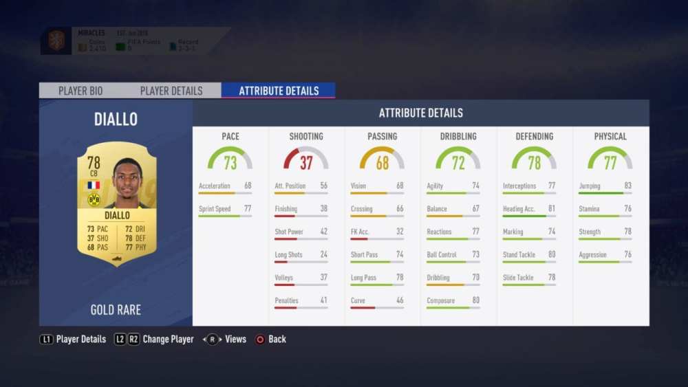 Sancho, Pulisic and Reus might take all of the headlines for Dortmund, but if you’re in the market for a young and tested center back with good potential, then Diallo is your man. Capable of also playing left back, Diallo blends good power (78 strength) with good pace (78 acceleration, 77 sprint speed). While his positioning (59 rating) needs some training, Abdou is also adept in the air (84 jumping, 81 heading accuracy) so he can help out on set pieces and defend crosses.