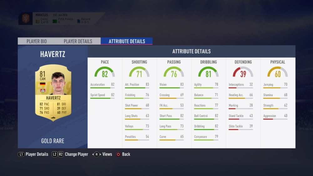 Kai Havertz – 19 years old – 6-foot-2, 183 pounds – 81 OVR CAM – Bayer Leverkusen
