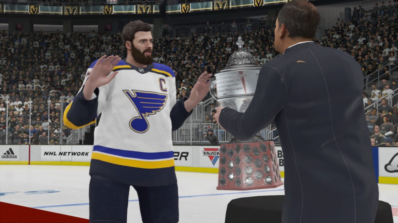 Out of superstition, Blues captain Alex Pietrangelo did not touch the Clarence S. Campbell Bowl — awarded to the Western Conference champions.