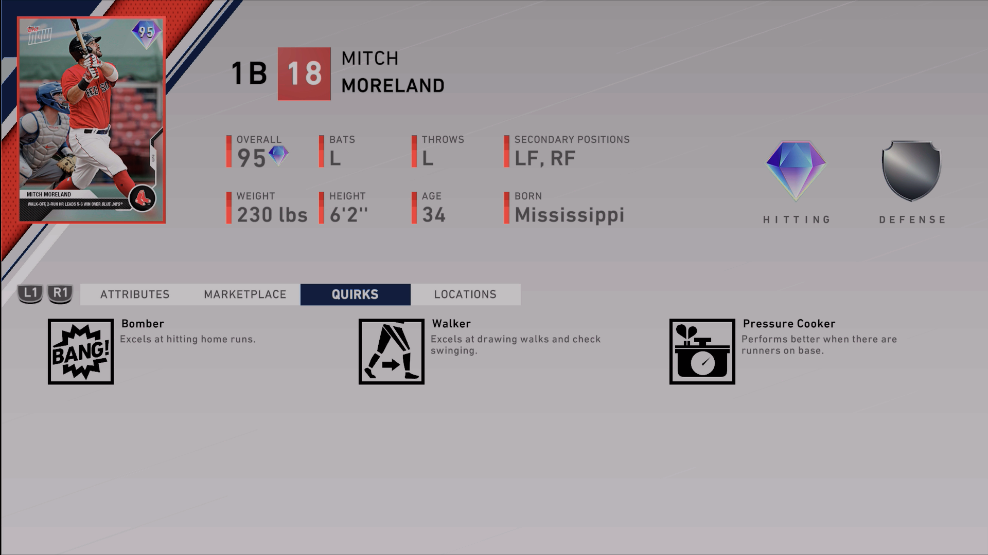 - Topps Now Mitch Moreland has 120 power vs. RHP