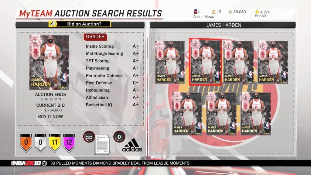 In addition to the PD Harden, there’s a few great diamond moments cards that I could at least sell. Like LeBron and Steph, or just a plain ol’ diamond Harden, actually. I always imagined that somehow 2K keeps track of how many packs people are opening, or at least the amount of money spent. Basically I figured if you spend a bunch of money, you are rewarded, and if you didn’t, you aren’t.