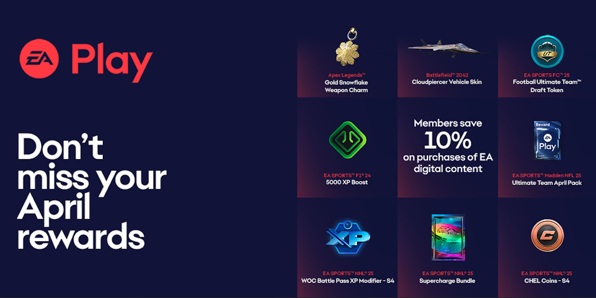 - Savings on EA digital purchases with a 10% member discount – letting you save on full games, Season Passes, points packs, and DLC.
