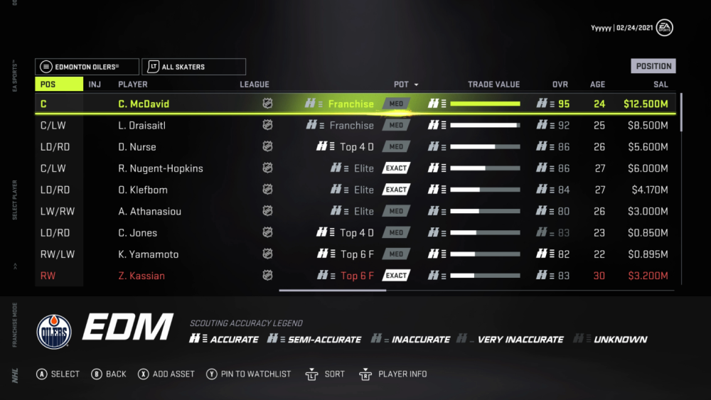 You’ll notice a greater separation in trade value from player to player. Players like McDavid will have high value and be much harder to acquire. We’ve also adjusted the value of certain positions, centers and defenders will see an increase in overall value while goalies and wingers will have slightly less overall value than previous years.