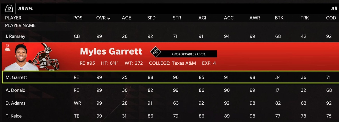 Of note, Cleveland Browns defensive end, Myles Garrett, has officially joined the Madden 99 Club, becoming the first Cleveland Brown to achieve the feat. He joins Jalen Ramsey, Aaron Donald, Davante Adams and Travis Kelce as current members of the 99 Club.