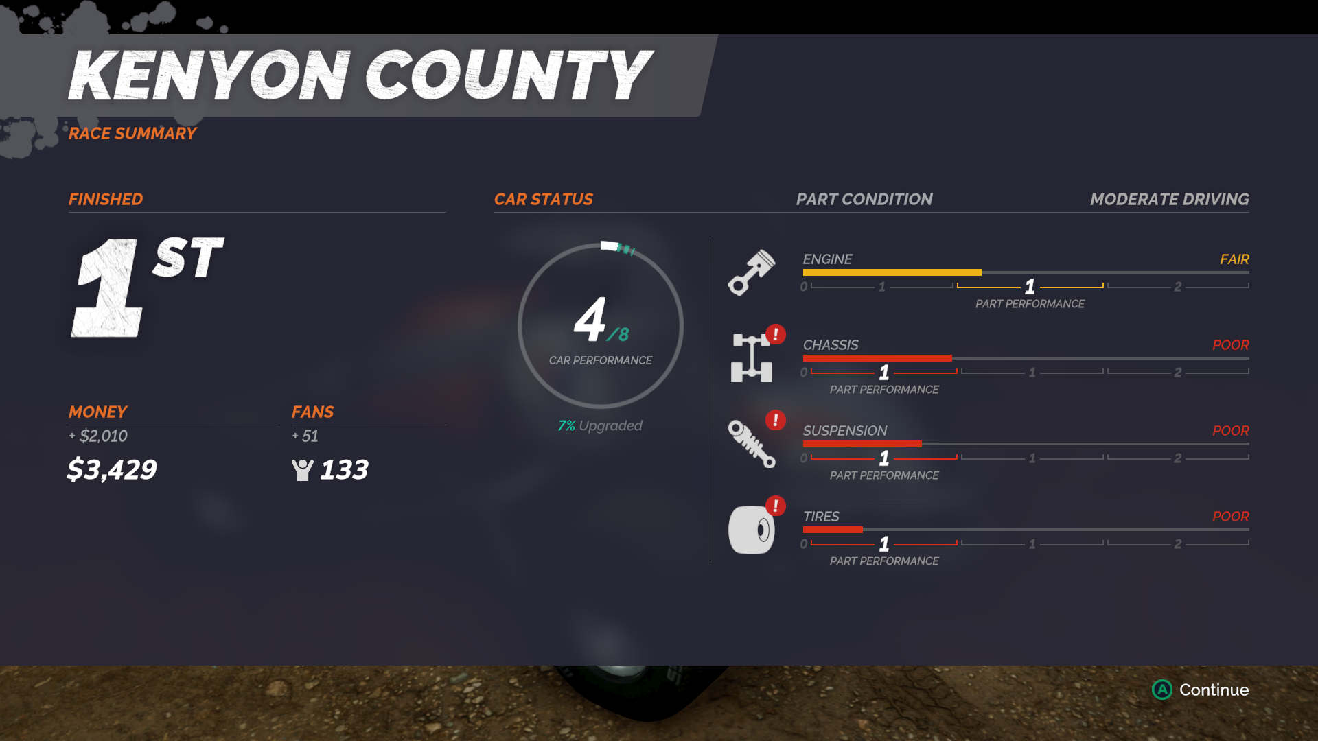 The post-race presentation is worse. Whether you win a big race or finish dead last, you simply get the same splash screen after every single race regardless of the series you’re in at that time. This was bothersome to me simply because the game really does a magnificent job of recreating the grittiness at each in every venue that you race at. It captures that small-town feel that a lot of these tracks reside at, so it’s unfortunate the presentation does not carryover to other aspects of SRX: The Game.