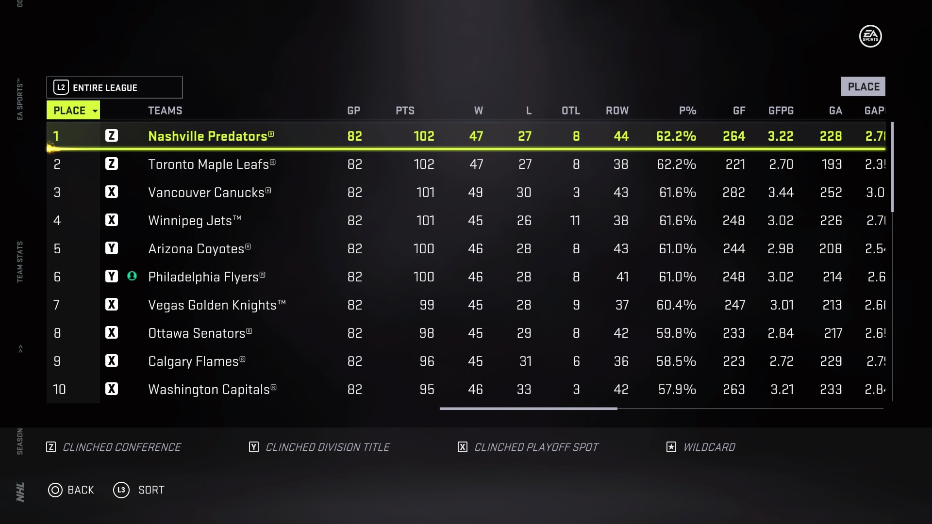 - Nashville Predators – most points in NHL