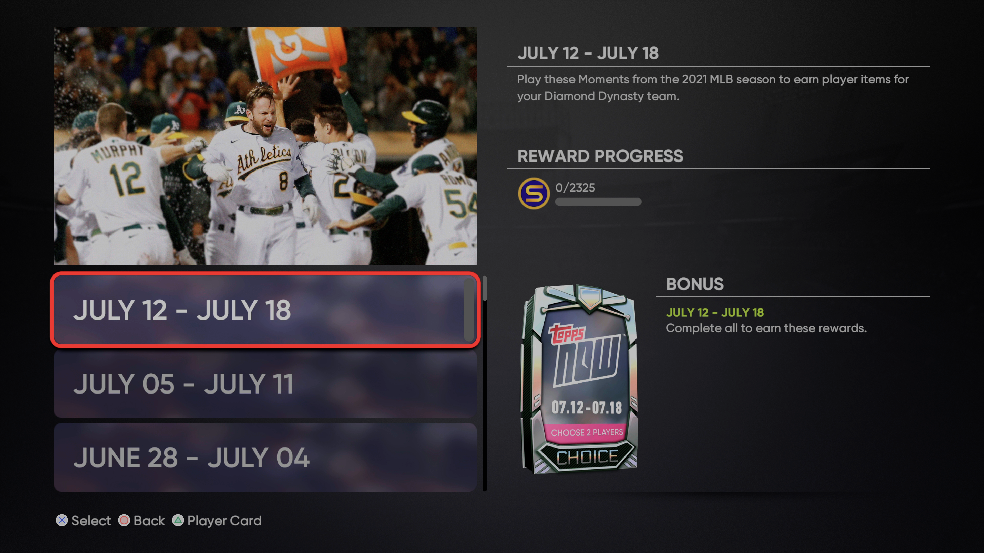 Coming off Week 2, it’s back to a smaller set of four players today for Topps Now July. The headliner is perhaps Max Fried (with solid hitting attributes), or if you’re a Red Sox fan it’s probably cool to get a Jarren Duran diamond. The other two Topps Now diamonds this week are Jed Lowrie and Wil Myers. You will get to pick two of the four players in your pack if you finish all the moments.